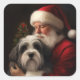 Tibetan Terrier Santa Claus Festive Christmas Square Sticker
