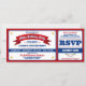 Fun, allstar baseball game ticket style birthday party invitation in your team colors of red, white and blue.