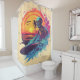 Transform your bathroom into a surfer’s sanctuary with the “Tidal Bones” shower curtain. Featuring the iconic image of a skeleton effortlessly riding a wave, this design captures the essence of surf culture with a playful twist. The backdrop of a sunset ocean scene, in warm hues of orange and yellow, sets a relaxed yet adventurous mood. The skeleton, in a dynamic pose on the surfboard, is surrounded by splashes of vibrant blues, pinks, and purples, symbolising the lively spirit of the sea. This shower curtain is not just a functional item but a statement piece that brings a touch of whimsy and colour to your daily routine. It’s perfect for those who love to combine their passion for surfing with a unique, edgy style in their home decor.