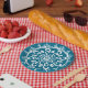 This white mandala sits on a teal background. The colours are very calming and peaceful. Part of the Payon Mandala Collection.