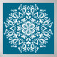 This white mandala sits on a teal background. The colours are very calming and peaceful. Part of the Pras Mandala Collection.