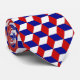 3D blocks in red, white and blue. They are stacked so that as you stare at them, the optical illusion is that they change orientation. Back of tie is solid red.