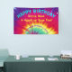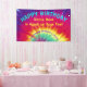 Tie Dye Banner Personalised for Birthday Banner or ANY Occasion. Type in the birthday girls Name, Age, Birthday Message or Delete. Click "Customise further" to CHANGE "Happy Birthday" Banner Message to Your Text. CALL Designer Linda: 239-949-9090 to make Design or Product CHANGES for you at no extra cost.