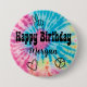 Tie dye birthday party button for a girl birthday party in tie dye theme.