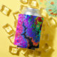 A tie dye inspired fractal art design with pink, blue, black, green, aqua, and red.