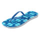 Flip Flops in a digital tie dye pattern in denim inspired shades of indigo, cobalt, and pale ice blue