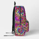 Unleash the wild side of style with our Tie Dye Rainbow Leopard Print Backpack, a vibrant fusion of fashion and ferocity. This backpack features a mesmerising leopard print in a rainbow tie-dye pattern, combining the elegance of big cats with the boldness of colourful hot pink, purple, yellow, and black hues. The front pocket boasts a striking black paw, adding an extra touch of animal magnetism.