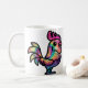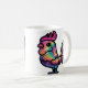 This artwork depicts a rooster in vibrant tie dye colours. The rooster is a symbol of power, strength, and courage, and the use of tie dye colours gives the design a fun and playful feel. This artwork could be interpreted in many ways, but at its core, it represents the beauty and diversity of nature.