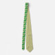 Holly leaves and berries in green. Leaves of holly intertwine over front of tie. Back of tie is solid beige colour.