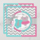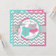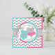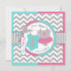 A sweet gender reveal party invitation card featuring chic grey and white chevron print and an adorable aqua polka dot jumper with a grey tie and a sweet hot pink tutu.