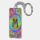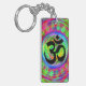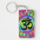 A funky, colourful kaleidoscopic fractal with a black om symbol and monogram.