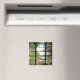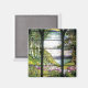 Beautiful Art Nouveau Stained Glass Window by Tiffany of Iris Flowers in a Stream is on this Magnet. Image is public domain due to expired copyright.