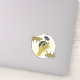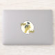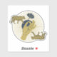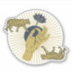 This sticker has two gold and blue tigers, a hand holding a flower and a sunburst.