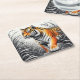 Tiger Art Colour Partial Black White Drawing Square Paper Coaster