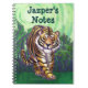 Cute tiger personal notebook brought to you by Imagine That! Design features our fun tiger walking through a lush green jungle with a yellow, green textured sky digitally painted by our talented children’s book illustrator, Traci Van Wagoner. Personalise your notes with your own name on top in a dark green (click "customise" to change the colour and/or font) and keep your personal thoughts safe within your very own wild animal notebook. Our playful tiger notebook is perfect for tiger lovers, big cat lovers, feline lovers, animal lovers, and wild animal lovers of all ages. Keep all your notes in one place and don't forget to send out greetings and news to all your friends with matching tiger in a rain forest stationery, letterhead, cards and much more all with our original tiger painting from our Animal Parade Line.