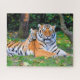 Tiger & Baby Posing Beautifully in Grass Together Jigsaw Puzzle