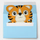 Cute tiger cartoon baby shower design is great for a safari party for a new baby boy on the way in blue! Also great for zoo and circus themes!
