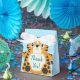 Cute tiger cartoon baby shower design is great for a safari party for a new baby boy on the way in blue! Also great for zoo and circus themes!
