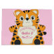 Tiger cartoon baby shower design is great for a safari, zoo or circus theme party! The pink background makes it great for a new baby girl on the way!