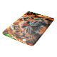 This bath mat has a tiger pictured on it.