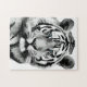 Tiger Black and White Blue eyes Jigsaw Puzzle