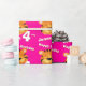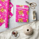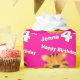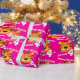 Birthday wrapping paper in girlie bright pink tiger design. Personalise this big cat tiger watercolor art birthday paper with your child's name and age. Currently reads Happy Birthday Jenna 4 today. Watercolor art and design by Sarah Trett.