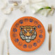 Orange and blue with Tiger head paper party plates.