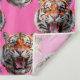 Seamless Repeat Roaring Tiger Head Pattern Design On Pink Background