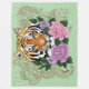 Tiger portrait with pink and light purple flowers. Henna all around the tiger in a backdrop of green.