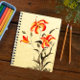 Tiger Lilie - red is a brush painting in traditional Chinese Free Style."XieYi". Watercolor and ink on rice paper.