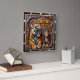This striking square wall clock features a highly dimensional illustration of a large, fierce tiger roaring and a small, smiling monkey nestled beside it. The entire design is rendered in vibrant orange, brown, and dark gray tones, strongly suggesting a deep carved relief or Engraved Wood Look. The tiger has textured stripes and is positioned on the left, while the cheerful monkey is on the right, looking forward. They are framed by a central hollow tree trunk and numerous stylized leaves carved into the perimeter. The carving style gives the entire image a strong three-dimensional, sculpted quality. The prominent, three-dimensional embossed text "BESTIES FOR LIFE" is carved across the top center. The clock face features a simple clock face border with large, white, numbered tick marks (1 to 12) integrated into the outer frame. The artwork is surrounded by a thick, dark brown decorative border that resembles a black wood frame.