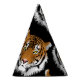 This party hat is shown in Tan, Brown and Black with Tigers all over this party hat.