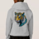 This digital illustration of tigers' heads draws a futuristic tiger character, blending the fierce features of the majestic animal.