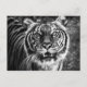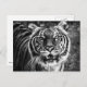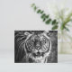 A postcard with a black and white photograph of a tiger.