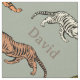 Earthy coloured printed fabric by the yard. The fabric is decorated with a tiger pattern with a custom name placed in different positions and with slight colour variations. Nice material for a boy's room crafting project, a sewing project or another creative project for and by a wild cat lover.