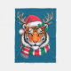 Tiger Reindeer Christmas Santa Hat Tiger Xmas Fleece Blanket