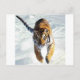 Tiger running in snow postcard