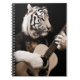 Minimalist, stylized artwork featuring a white tiger playing an acoustic guitar. Dramatic contrast and clean lines create a serene, artistic vibe for home item