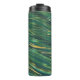 A Green and Yellow Tiger Stripe Camouflage abstract with small amounts of blue by artist Jason Girard titled existence. Pattern stylised for a type of fabric look.