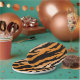 Paper party plates featuring a tiger stripe design created by the artist Alan Skyrme