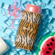 Tiger Pattern Seltzer Can Cooler featuring tiger stripes with customisable text.