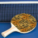 Bold orange and gold tiger stripes on a black background makes an exciting ping pong paddle.