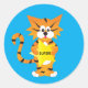 A Round Sticker perfect for the classroom teacher looking to motivate and reward their students, this sticker serves as a tangible and cheerful token of recognition. A sticker for a job well done or a special achievement. This original design features an adorable tiger cat, exuding a playful spirit as it confidently holds a star with the text Super, radiating positivity and encouragement.
