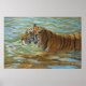 Tiger Swimming Big Cat Acrylic Painting Poster
