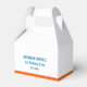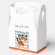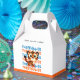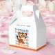 Threenager birthday party thank you favour boxes for guests to celebrate a little boy's 3rd birthday. Modern design with orange and blue colours for a kid's party.