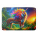 This fantasy bath mat has a rainbow tiger unicorn pictured on it.