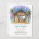 Tiki theme couples shower invitation features a watercolor Tiki bar on the beach under the moon and stars with palm trees, string lights, Tiki torches and an "Aloha" greeting. Tropical cocktails, a pineapple, hibiscus and palm leaves, a surfboard and a parrot in a pirate hat decorate the bar area. The reverse side is a painting of rustic wood planks that coordinate with the Tiki hut. This is shown as a couple's shower invitation but if the celebration is for only the bride-to-be, you can personalise it with her first and last name (instead of two first names). Art by KL Stock
