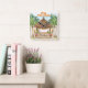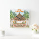 Tropical Tiki theme wall clock feature a watercolor Tiki bar on the beach (complete with a parrot and cocktails) framed by palm trees, Tiki torches and totems with "Aloha" and "It's Tiki Time" captions in island style fonts. The name and caption can be personalised.