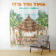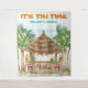 Tropical luau theme photo backdrop features a watercolor Tiki bar on the beach (complete with a parrot and cocktails) framed by palm trees, Tiki torches and totems with "Aloha" and "It's Tiki Time" captions in island style fonts. The text can be personalised (for example it is shown here with two names as if for a couple's shower, but you could personalise the text and change it to "Happy Birthday Marley", or whatever suits your celebration). Perfect for wedding, shower, birthday, anniversary, etc. Art by KL Stock.