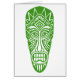 A card with an original hand drawn Tiki Mask style face in a bold woodcut style. Card is plain inside, which can be further customised. A smaller version of the main image is also shown on the back of the card.
